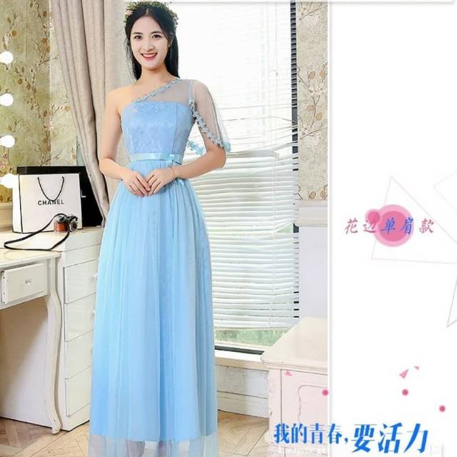 Jual Baju Pengapit Pengantin Party Dress Panjang Warna Pale Blue Grey Kota Surabaya Branded Shoppee Tokopedia